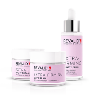 Moderní protivrásková péče stojí především na kombinaci přesně cílených aktivních látek a funkční rutiny, která je dobře snášená i zralejší či citlivější pletí. Řada Revalid Extra-Firming spojuje švýcarskou biotechnologii s přírodními aktivními látkami, jako jsou rostlinné peptidy a extrakty z mikrořas či zimolezu. Společně stimulují přirozenou tvorbu kolagenu a kyseliny hyaluronové, čímž zlepšují pevnost, pružnost i hydrataci pokožky. Díky tomu se pleť stává zářivější, vrásky jsou méně viditelné a celkový vzhled působí mladistvě a odpočatě. Dopřejte své pokožce péči, která pracuje ve dne i v noci – protože krásnou, pevnou a zdravou pleť si zaslouží zkrátka každý!