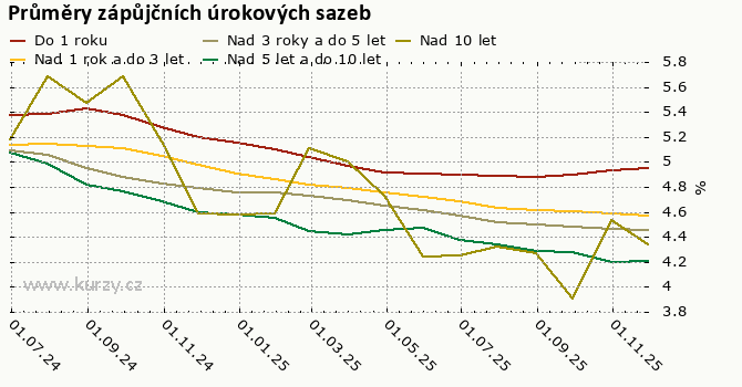 Průměry zápůjčních úrokových sazeb pro účely náhrady nákladů za předčasné splacení spotřebitelského úvěru na bydlení - listopad 2025