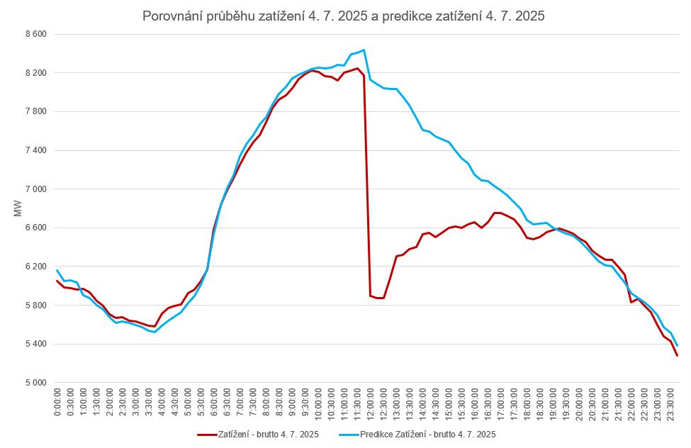 Důvodem výpadku elektřiny z 4. července 2025 byl souběh vzájemně nesouvisejících událostí. Vyplývá to ze zprávy shrnující vyšetřování této mimořádné události, kterou zpracovala a zveřejnila společnost ČEPS. Pád fázového vodiče na vedení V411 a následné snížení činného výkonu a výpadek zdrojů v oblasti o celkovém výkonu cca 470 MW vytvořily dispečersky bezprecedentní situaci, která vyvrcholila za několik minut rozsáhlým výpadkem elektřiny v části Prahy a čtyř krajů.