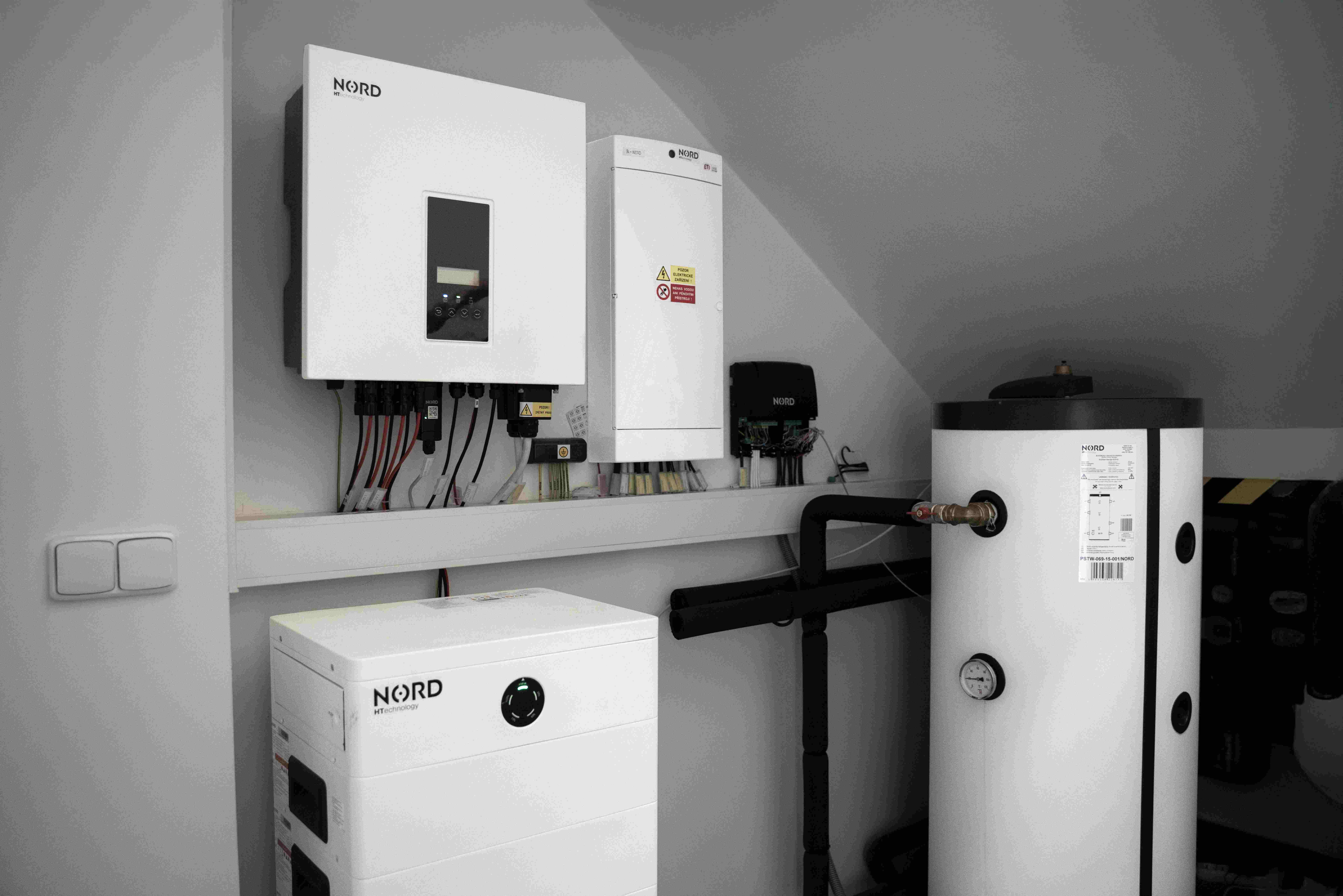 Technologie NORD HT stojí na propojení klíčových energetických prvků do jednotného ekosystému. Součástí je například fotovoltaická elektrárna, bateriové úložiště doplněné o akumulační nádrže pro efektivní ukládání energie do vody,, tepelné čerpadlo, rekuperace další technologie z tohoto komplexního řešení, jako je nabíjecí wallbox pro elektromobily. Všechny komponenty jsou řízeny vlastním systémem energetického managementu HEMS EcoControl, který funguje jako centrální mozek domácí energetiky, přičemž sleduje bilanci výroby a spotřeby, zohledňuje předpověď počasí i aktuální spotové ceny, řídí ukládání přebytků nejen do baterií, ale i do akumulačních nádrží či podlahového vytápění,, plánuje spotřebu podle dostupnosti energie a koordinuje provoz technologií tak, aby se omezil odběr ze sítě a snížily se náklady na provoz domácnosti.