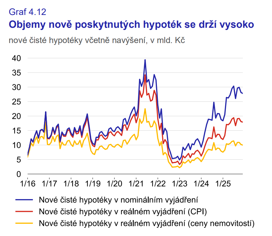 Úvěry domácnostem na bydlení a spotřebu dále zrychlily svůj růst - zpráva o měnové politice | zima 2026