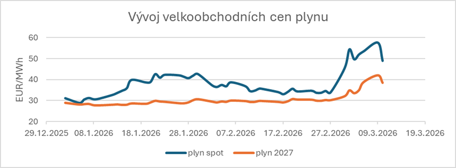 Koncem minulého týdne Katar varoval, že obnovit celý proces a začít znovu vypravovat dostatečné množství lodí nebude jednoduché a zabere nějaký čas. Vysoké dodávky plynu do Evropy jsou teď potřebné, aby bylo možné naplnit zásobníky před další zimou. Včera pozdě odpoledne americký prezident Donald Trump řekl, že válka skončí velmi brzy, na což trh zareagoval určitou úlevou a ceny dnes o něco klesají. Nicméně situace je velmi dynamická a mění se každým dnem. Další predikce vývoje trhu je tak velmi těžká, protože bude reagovat zejména na řešení aktuálního konfliktu.
