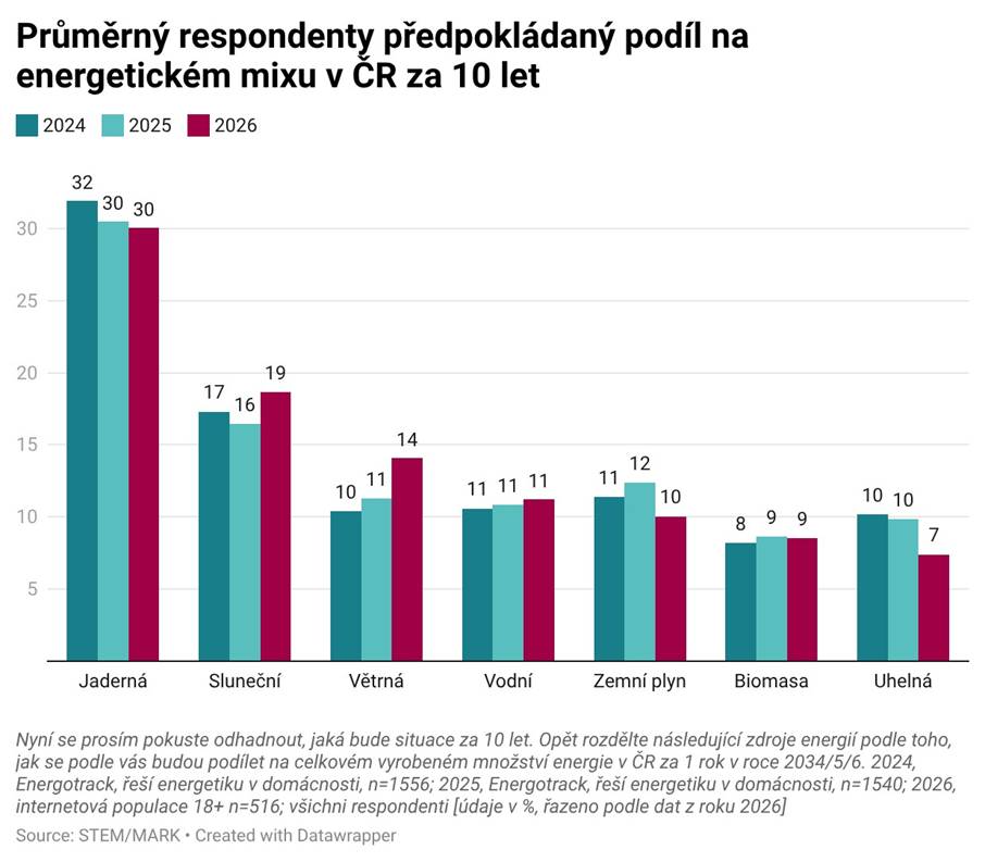 „Subjektivní nadhodnocování podílu OZE v EMIXU ČR tak lze interpretovat jako další indikátor jejich podpory, respektive důvěry v potenciál a dlouhodobou perspektivu obnovitelných zdrojů energií. Což lze dále doložit tím, jak je zastoupení zdrojů v EMIXu Čechy očekáváno v roce 2035“ doplňuje ze studie Energotrack ředitel STEM/MARK, Tomáš Rychecký.