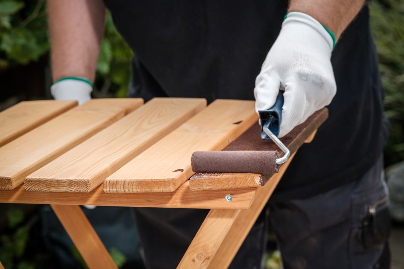 Barvu před použitím opatrně promíchejte, abyste nevmíchali vzduchové bubliny. Podle velikosti natírané plochy ji nanášejte již neředěnou plochým štětcem nebo válečkem. „Aplikujte ji ve 2–3 vrstvách s odstupem alespoň 4 hodiny. Dřevo natírejte po směru vláken. Mezi jednotlivými nátěry povrch jemně zbruste,“ dodává Radek Kříž.