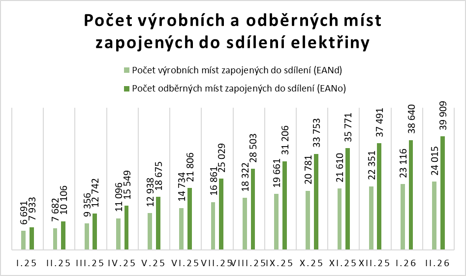 Ke sdílení elektřiny se za přibližně rok a půl od jeho spuštění u EDC přihlásilo celkově již 38 817 zájemců. Ti se sdružili do 22 770 skupin sdílení a zaregistrovali 39 909 odběrných a 24 015 výrobních míst. Celkový objem sdílené elektřiny dosáhl 67,9 GWh, což pro představu odpovídá roční spotřebě všech domácností města Teplice. Nejpočetnější skupinou sdílení jsou tzv. aktivní zákazníci (21 709), následovaní bytovými domy (955) a energetickými společenstvími (106).