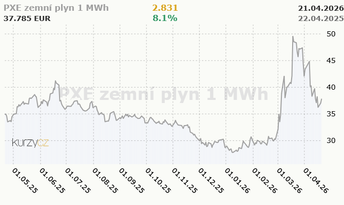 PXE – Zemní plyn - ceny a grafy PXE zemního plynu, vývoj ceny
