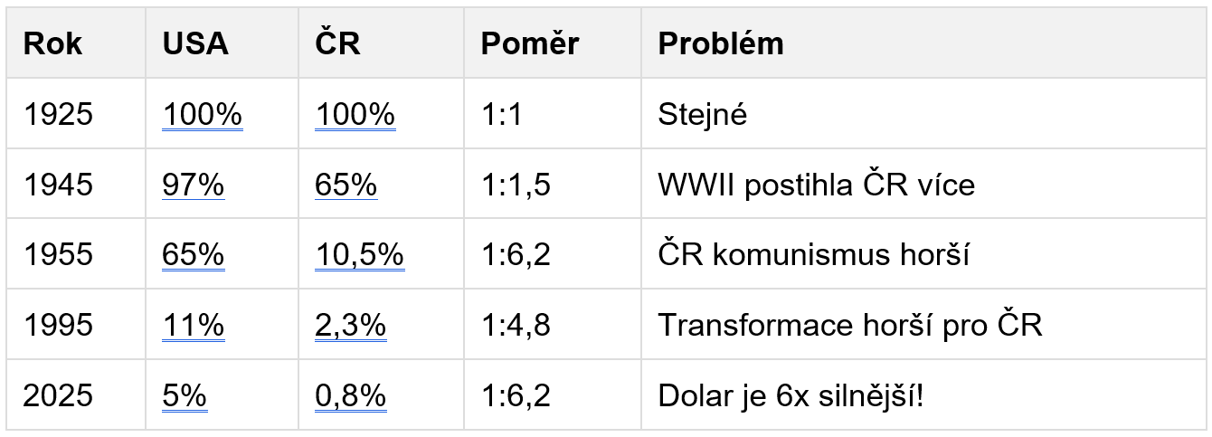 ČR byla ještě SLABŠÍ než USA kvůli historickým okolnostem