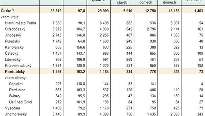 V Pardubickém kraji byla v průběhu roku 2025 zahájena výstavba 1 498 bytů - Bytová výstavba v Pardubickém kraji v 1. až 4. čtvrtletí 2025