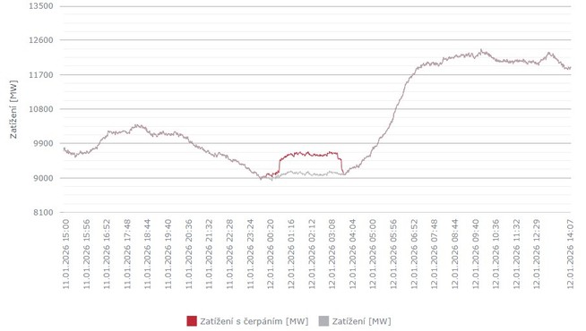 Dnes v čase 10:00–10:05 padl absolutní rekord v zatížení české elektrizační soustavy. V síti jsme naměřili průměrnou hodnotu 12 318 MW brutto (včetně vlastní spotřeby elektráren), což překonává dosavadní maximum 12 226 MW z 15. února 2021.
