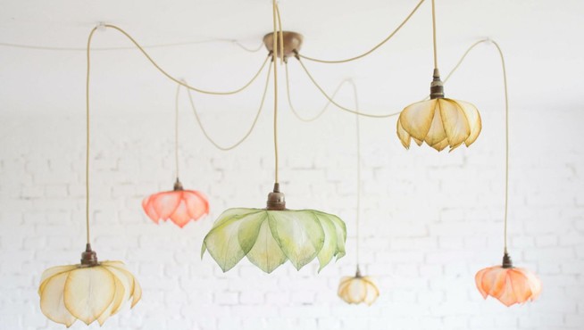 Inspirací pro ručně vyráběné lustry značky Jsem světlem je kouzlo přírodních materiálů, jemnost papírových květů, křehkost skleněných bublin i příběhy dávno zapomenutých skleněných mís.