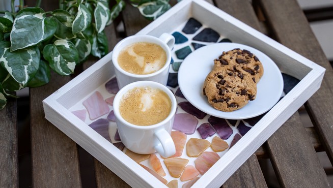 Nejlepší odměnou po náročném dni jsou chvíle u dobré kávy. A co teprve, když ji servírujete na vlastnoručně vyzdobeném podnosu? Natřete ho krycí barvou Balakryl UNI a vytvořte pestrobarevnou mozaiku, která promění každé servírování ve výjimečný okamžik.